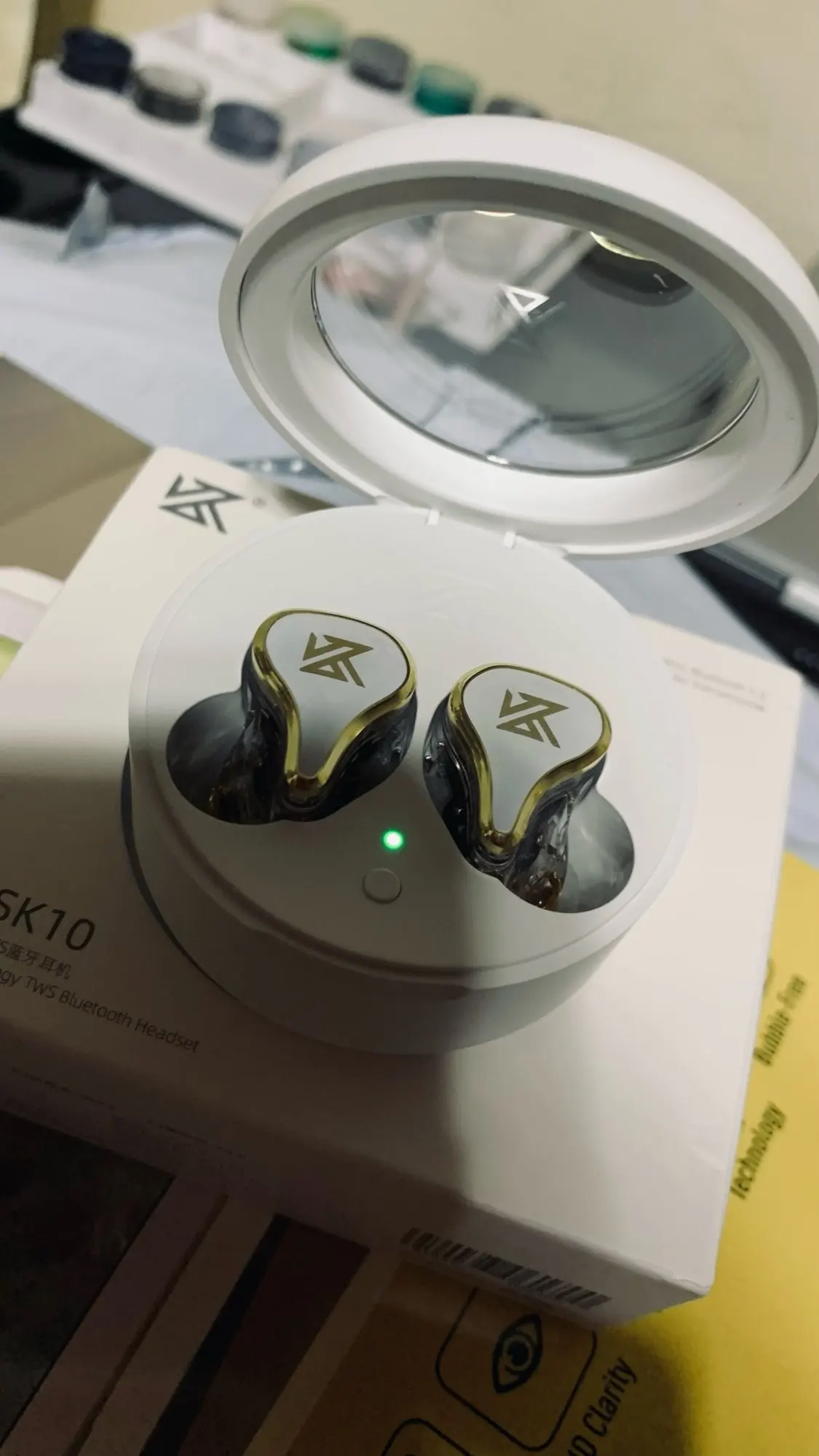 Cool, really transparent and you can see everything inside. They sit tight in the ear. The only thing happens is that one earphone may lose contact, but it almost immediately connects. Of course, the price is high for such headphones, because they are not such that they hold a charge of 100 + hours, but in principle cool)